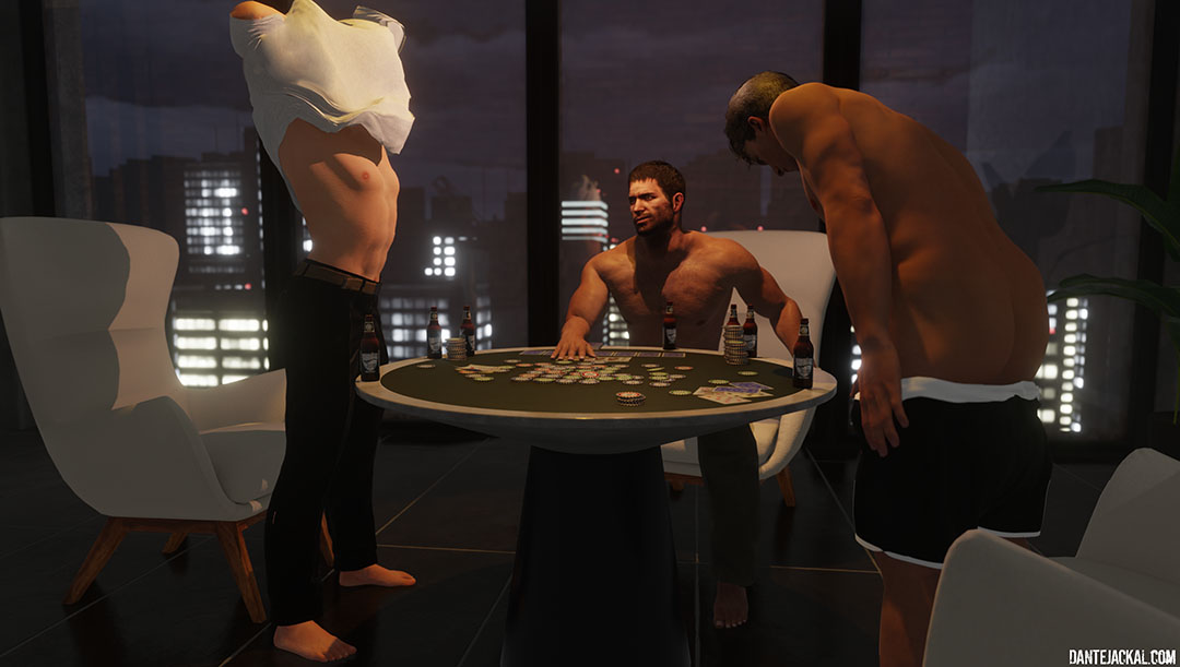 After an intense game of poker, Chris decides to playfully up the anti as he's playing alongside two very good looking boys, Rupert and Joe. Now the rules are simple, if you lose, you lose an item of clothing. The first one to lose all their clothes, submits to the other two. Loaded with booze, there is no disagreement and as the games go on, the clothes begin to come off. Considering Rupert is an android, it is obvious he didn't download the rules and loses every game. Compliant with the rules, he offers himself to Chris and Joe with no resistance, and as Joe enjoys what he sees and explores Rupert, Chris is left horny and soon sinks his way into Rupert. The evening comes to a head as Rupert is left soaked in their loads and that of his own. |